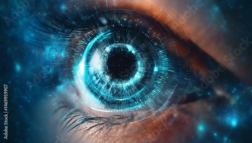 A close-up of an eye with digital elements, symbolizing the use and evolution of artificial