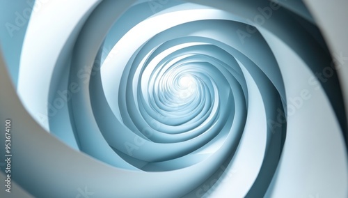 A close-up of an infinite spiral made from white paper, creating the illusion that it is a tunnel