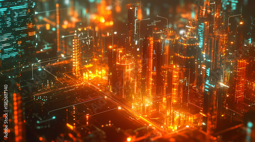 A close-up of an oil refinery with fluctuating stock market graphs overlaying, representing the volatility of the oil industry. Velvetlight. Illustration