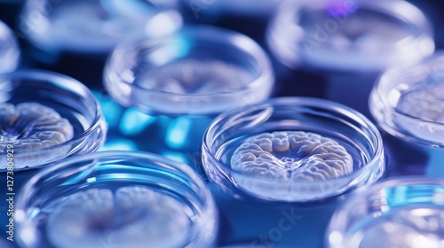 A close-up of brain plaques on a microscope slide in a lab. Featuring focused research and scientific analysis