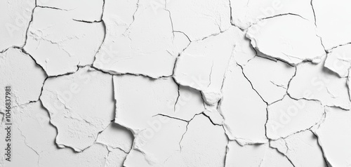 A close-up of cracked, peeling white paint on a surface, revealing a textured pattern that illustrates decay and aging.
