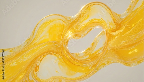 A close-up of flowing yellow liquid with a smooth, glossy surface, forming a loop. The vibrant color and fluid motion create a captivating visual effect.