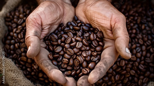 A closeup of hands holding coffee beans, showcasing the rich color and texture of rokapedra coffe from colombia