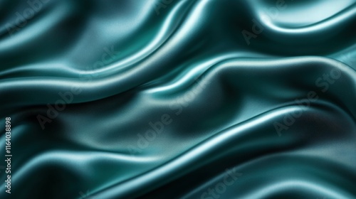 A close-up of smooth, flowing teal satin fabric, showcasing its texture and sheen.