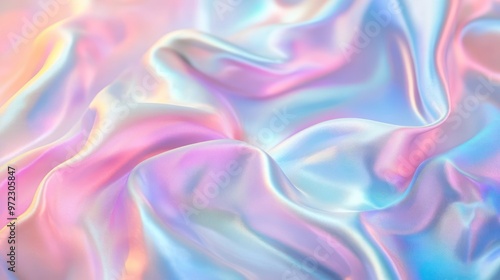 A close-up of soft, iridescent fabric displaying pastel hues of pink and blue, creating a dreamy and elegant ambiance.
