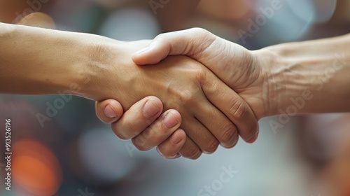 A close-up of two hands shaking, symbolizing agreement, partnership, trust, and cooperation in a professional or personal context.