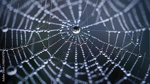 A close-up of water droplets on a spider web, highlighting precision and intricacy