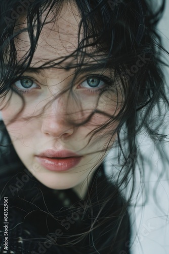 A close-up of windswept hair in a moody setting with a hint of mystery and elegance