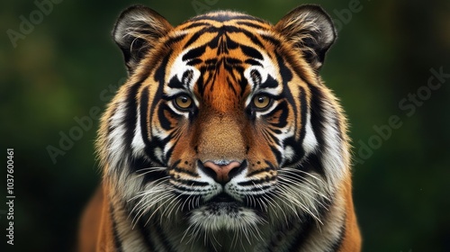 A close-up portrait of a tiger showcasing its striking features and intense gaze.