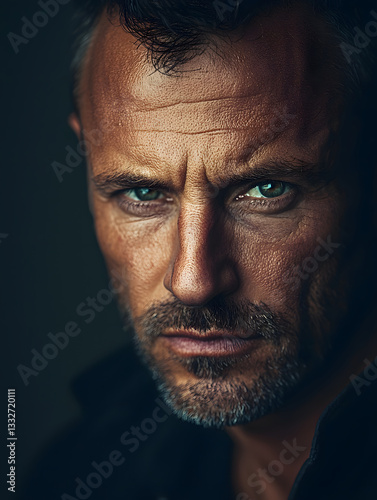 A close-up shot capturing deep emotions and a powerful gaze, evoking strength.