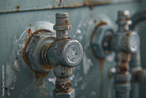 A close-up shot of a bunch of valves mounted on a wall, suitable for use in technical illustrations or industrial settings