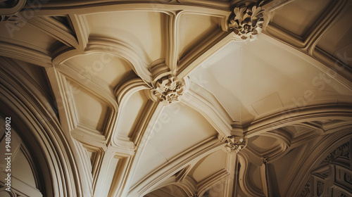 A close-up shot of architectural detailing on a vaulted high ceiling, adding character to the room.