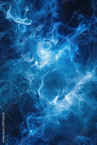 A close-up shot of blue smoke on a black background, ideal for use in designs or graphics where a subtle, mysterious atmosphere is desired