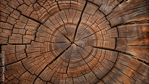 A close-up shot of weathered tree rings in a log