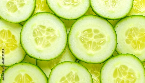 A Close-up, Top-down View of Freshly Sliced Cucumbers Arranged to Create a Vibrant and Textured Green Pattern