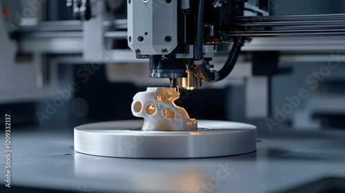 A close-up view of a 3D printing machine creating a detailed object layer by layer