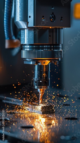 A close-up view of a CNC milling machine cutting a piece of metal