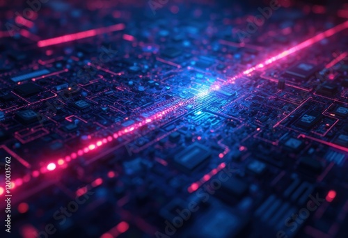 A close-up view of a computer motherboard with various electronic components and printed circuit boards