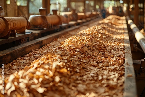 A Close-Up View of a Conveyor Belt Filled with Wood Shavings
