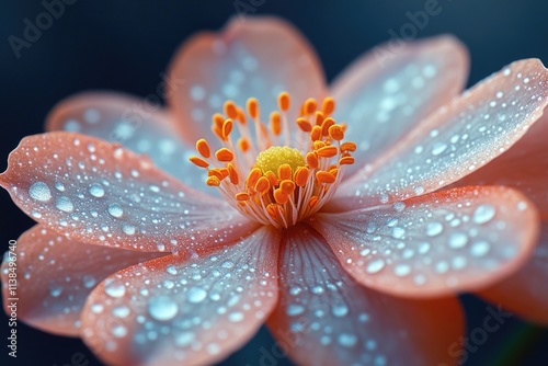 A close-up view of a flower with water droplets on its surface