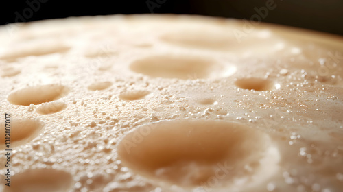 A close-up view of a frothy, textured surface, showcasing bubbles and droplets. Perfect for illustrating themes of freshness and indulgence in food and beverage contexts.