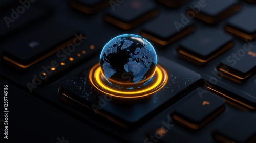 A close-up view of a globe on a keyboard, symbolizing global connectivity and technology.