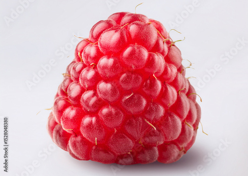 A close-up view of a highly detailed, digitally generated raspberry (Rubus idaeus) with a vivid pink-red color