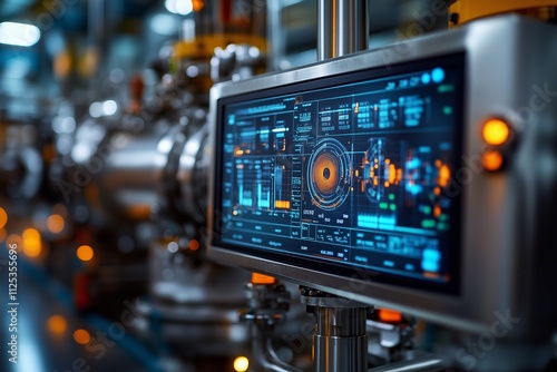 A close-up view of a high-tech monitoring screen displaying detailed data, analytics, and operational metrics within an industrial facility.