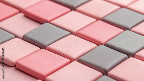 A close-up view of a matte grid composed of pink and gray squares, each with smooth, rounded corners and a soft, muted finish.