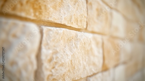A close-up view of a stone wall, showcasing the texture, color variations, and natural patterns in the individual stones, emphasizing architectural detail.