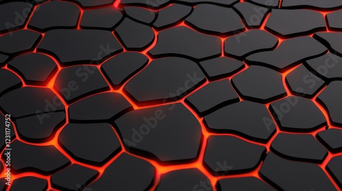 A close-up view of a textured surface resembling volcanic rock, with glowing red cracks highlighting the dark background.