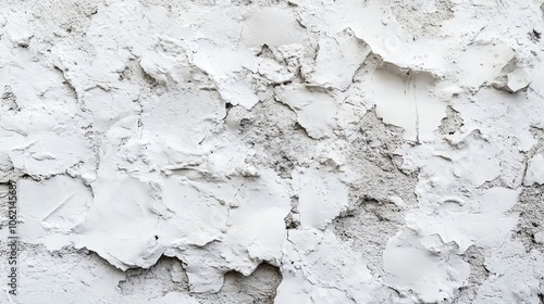 A close-up view of a textured white wall with peeling paint, showcasing its aged and distressed appearance.
