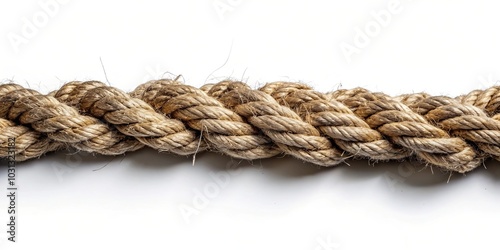 A close-up view of a thick rope woven into a complex pattern, with a soft focus blurring the background into a white canvas.