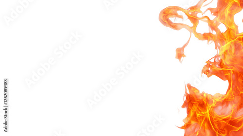 A close-up view of a vibrant, flickering flame against a clean white background, capturing the dynamic movement and energy of fire.