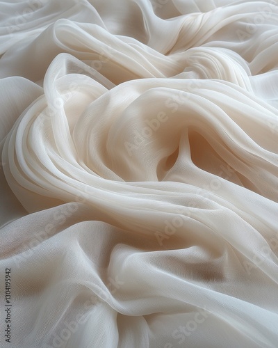 A close-up view of a white fabric showcasing an intricate arrangement of deep, flowing folds and creases, creating a rich texture that highlights the softness and elegance of the material.