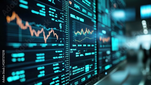 A close-up view of digital financial charts and data displays, showcasing market trends and analytics on a high-tech screen.