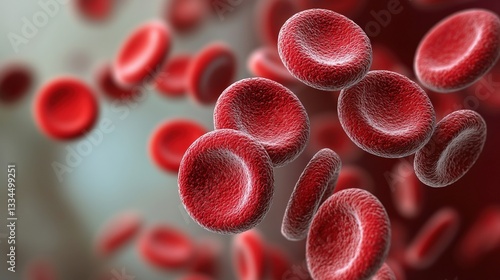A close-up view of red blood cells floating in a fluid, showcasing their round shape and vibrant color.