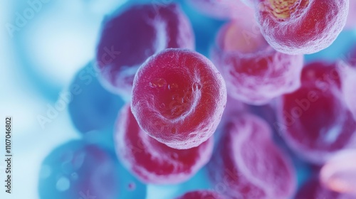 A close-up view of red blood cells under a microscope, with a scientific and educational approach, Medical style