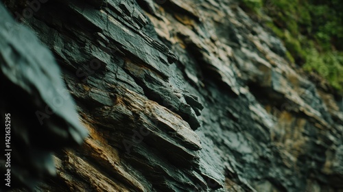 A close-up view of rugged, textured rock formations showcasing a mix of dark and earthy tones, highlighting natural geological features.