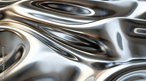 A close-up view of smooth, reflective metallic surface with flowing patterns.