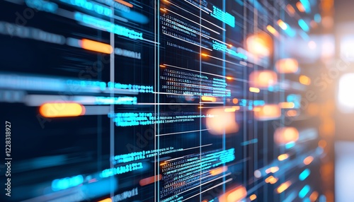 A close-up view of vibrant digital data streams, showcasing the dynamic interaction between technology and information