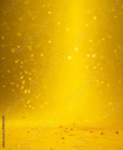 a close-up view yellow liquid, possibly oil or paint, with small particles floating on its surface The background is blurred, creating a sense of depth and focus on