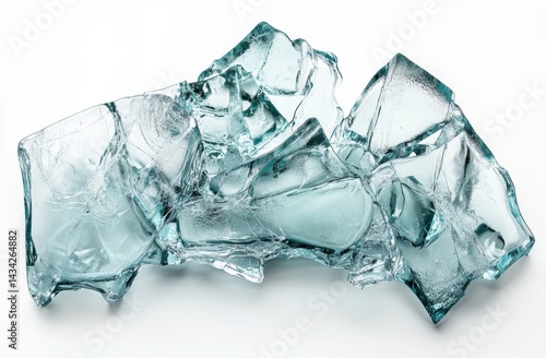 A cluster of broken glass shards on a white background