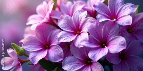 A cluster of delicate light purple flowers with soft petals, exhibiting intricate details and vibrant color saturation, creating a visually captivating floral arrangement.