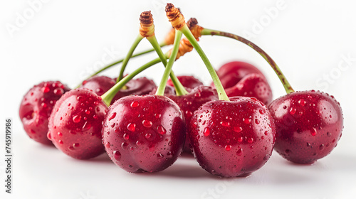 A cluster of ripe cherries with stems.