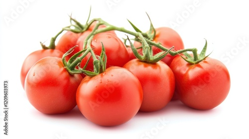 A cluster of ripe, red tomatoes gleaming with freshness, Their glossy skins reflecting the light