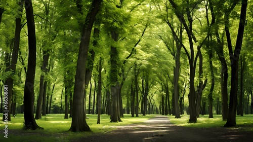 A cluster of tall, slender trees standing in perfect harmony, their lush green leaves forming a dense canopy.