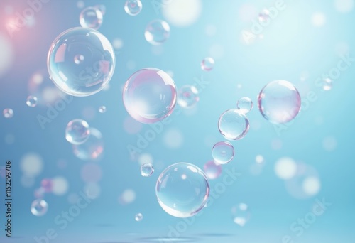 A cluster of transparent bubbles float against a soft blue and pink background.