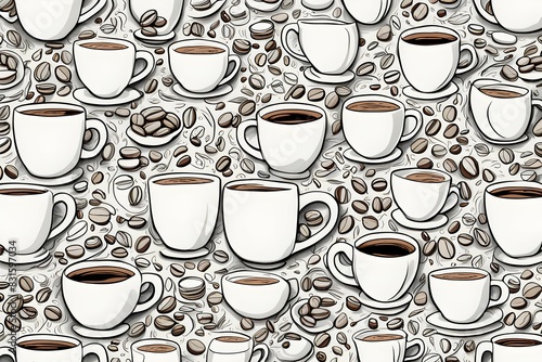 A coffee cup pattern with many cups and coffee beans