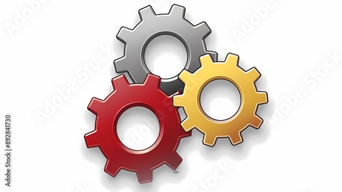 A cogwheel icon, gray and red and yellow tint, white background, Generative AI illustrations.